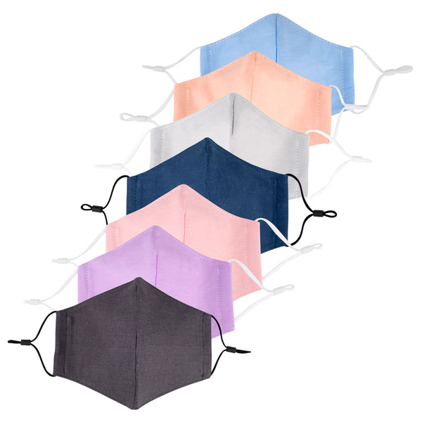 A breathable 3 layer face mask made of washed linen exterior, polyester filter mid lining and soft cotton organza interior (face side) lining. They are individually cut and sewn in Orange County, CA. This is NOT a medical grade mask. The masks feature an aluminum nose piece for better fit and an adjustable soft elastic for a pain free fit on your ears. Please check the dimensions fit & face coverage. They are washable and reusable. Tumble dry on low heat.
