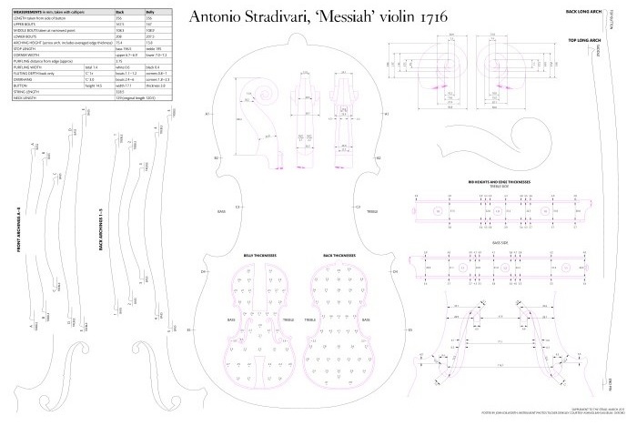 Stradivari’s 1716 ‘Messiah’ violin is one of the most coveted in the world. The pristine condition of the instrument, made during his ‘golden period’ and barely played since then, offers unique insights into the mind of the great master. This poster will be an excellent resource for anyone trying to replicate such a violin. Includes measurements