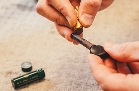 Once the tuning peg is removed from the scroll and cleaned, remove peg paste from tube, peel back foil as required. Apply the peg paste sparingly to the length of the tuning peg - a small amount goes a long way. Reinsert the pegs into the pegbox, tuning them gently as you push them in, to evenly distribute the peg paste inside the peg holes. Turn each peg slowly to ensure that they move smoothly without sticking. If necessary, you can adjust the amount of paste or wipe off any excess.