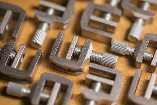 Special designed clamps for gluing linings and edges. Made of duraluminium, the same grade of aluminium alloy that use in the aerospace industry, for better quality, durability and utility. Jaw depth: 12 mm Jaw opening: 8 mm Price is per 1 clamp