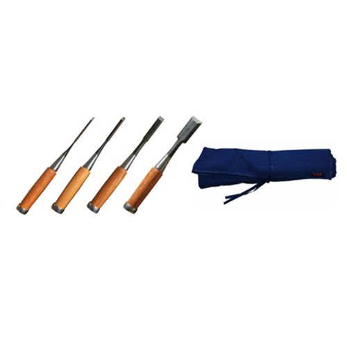 This chisel starter set contains the essential and popular blade widths and includes a nice roll-up tool bag. Includes: 3mm, 6mm, 12mm, and 24mm chisels - HRC63 blade hardness, 225mm overall length. Navy canvas cotton tool bag with 16 pockets.