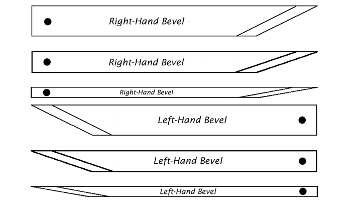 Hock Violin Maker's Knives. These knives are beveled on both sides or right-hand or left-hand. Sold as blades only, no handles. High-carbon steel. Blade sizes were suggested by the late master violinmaker Hans Weisshaar.