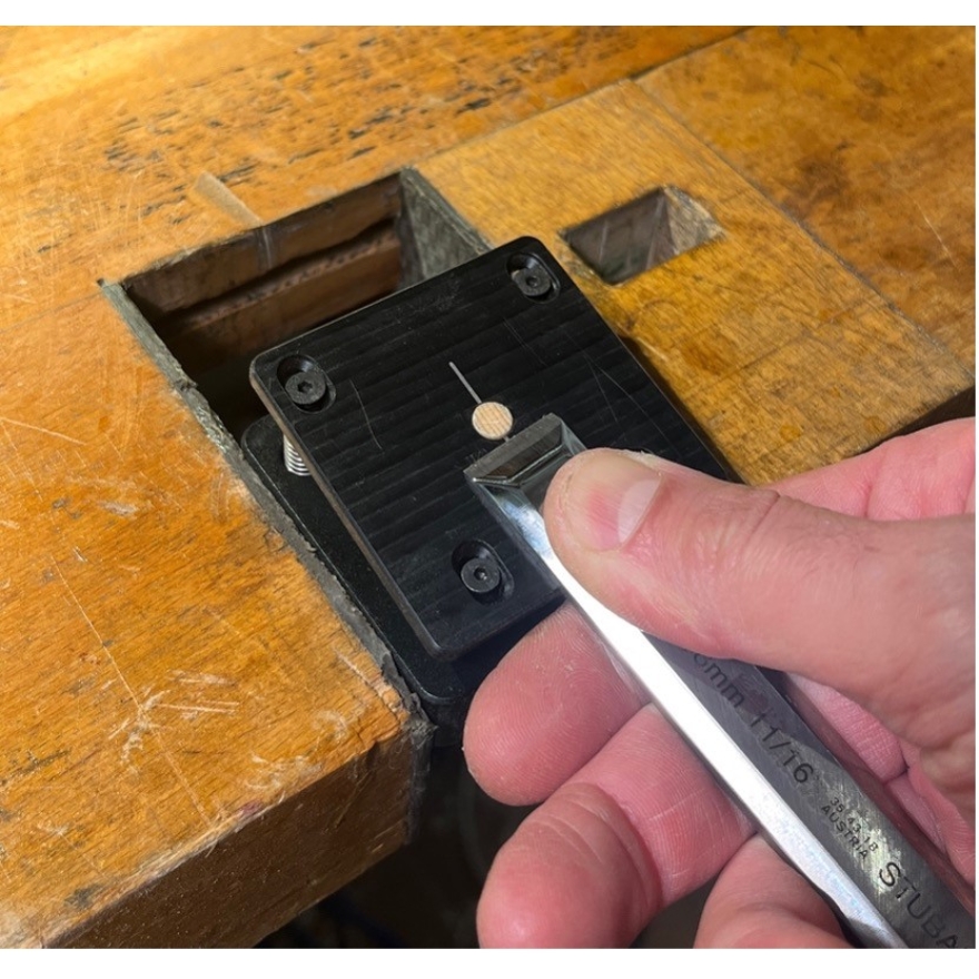 The Sound Post Station is a device designed to simplify the carving of the violin's soundpost. Thanks to its precise calibration, it is possible to quickly identify the angles of the soundpost faces and cut them using a simple chisel. Furthermore, these angles can be saved for future constructions. The Sound Post Station also allows you to replicate the angles of old soundposts simply by placing the soundpost inside the Sound Post Station and calibrating the plates according to the existing soundpost. Soundposts that have become too short can be quickly and easily created with a new height and replaced. Thanks to the adjustable hole size, sound posts for violin, viola and cello can be handled.
